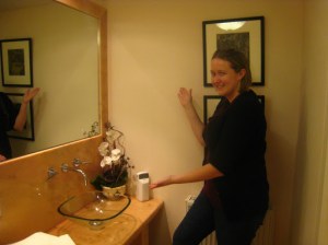 This photo is for Sara and Kelly, since they were a TAD obsessed with bathrooms in London! 🙂 This is the bathroom of the restaurant Contrast in Inverness. Classy. (the restaurant, not me, who seems to be doing a bad Vanna White impression).