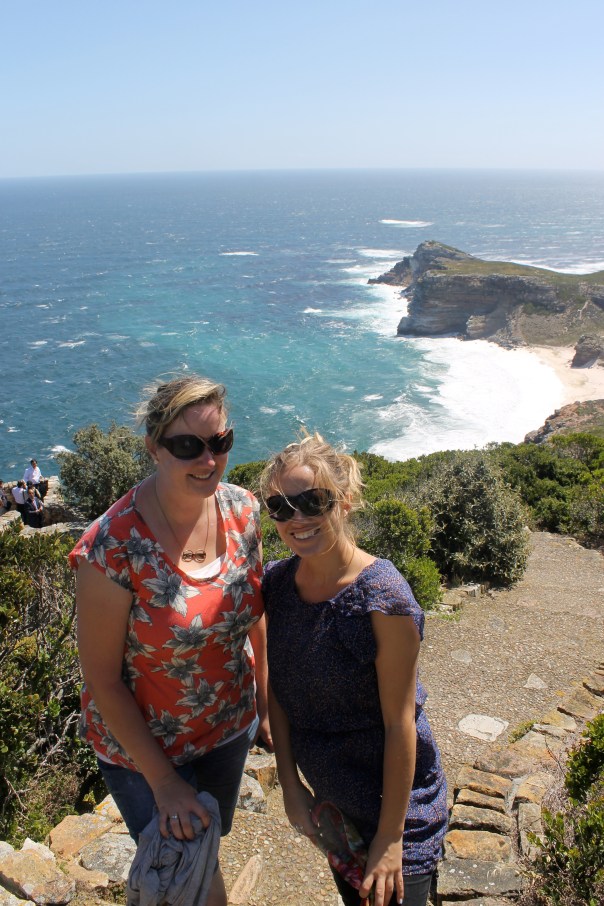 Caroline and I at Cape Point, with the Cape of Good Hope behind us