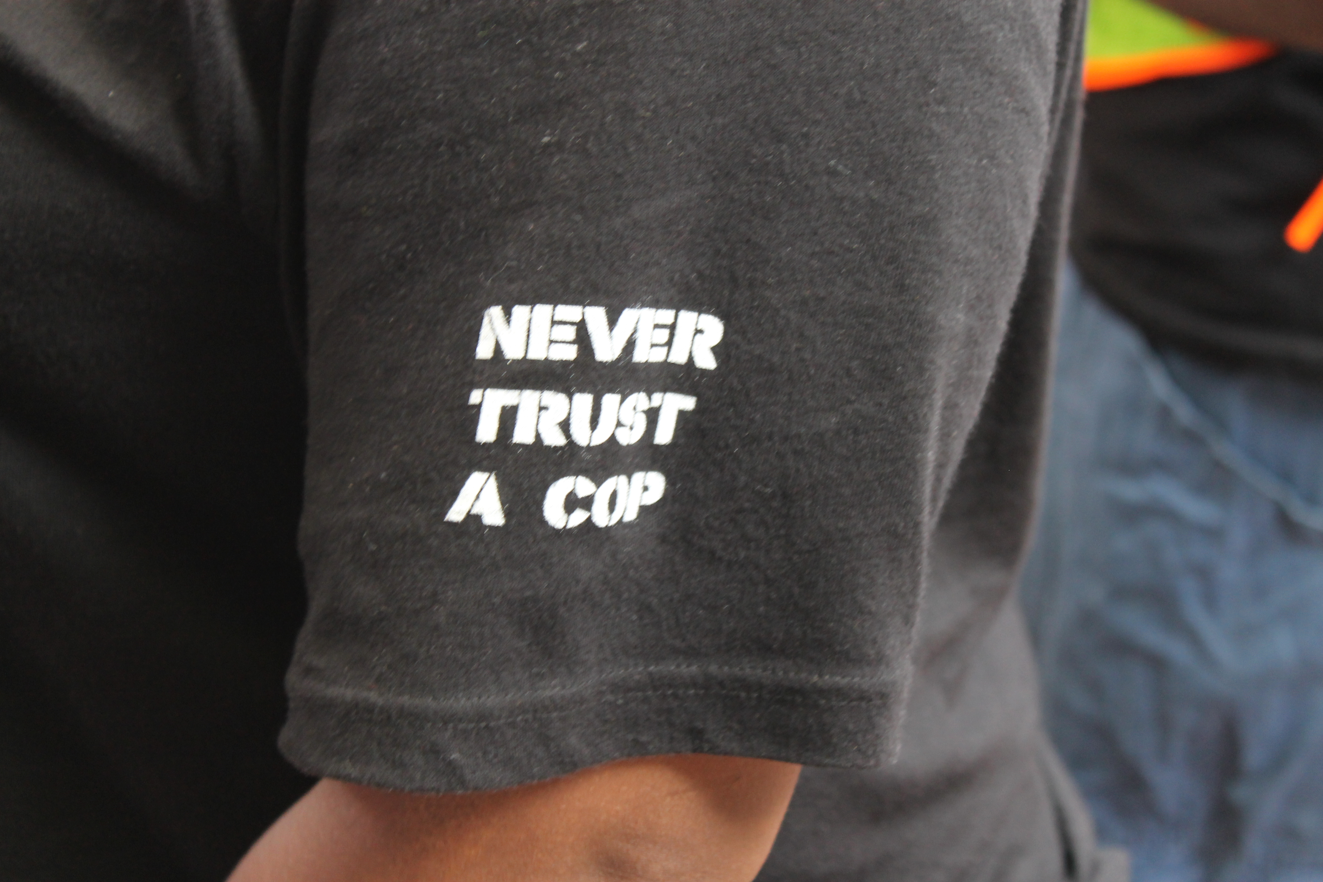The police presence was exceedingly high. At previous rallies I’ve been to, I’m never sure if the police are there to protect the public from us, or us from the public. At London’s (UK) Reclaim the Night march that I participated in 2 years ago, the police were definitely there to protect us. At this march, I wasn’t so sure. Mainly because the majority of them had riot shields, and they were plainly blocking us from entering certain establishments (such as McDonalds…not sure why…and a hotel). And we spotted police with guns on the tops of buildings along the route, particularly at the intersections. It was a bit unnerving.