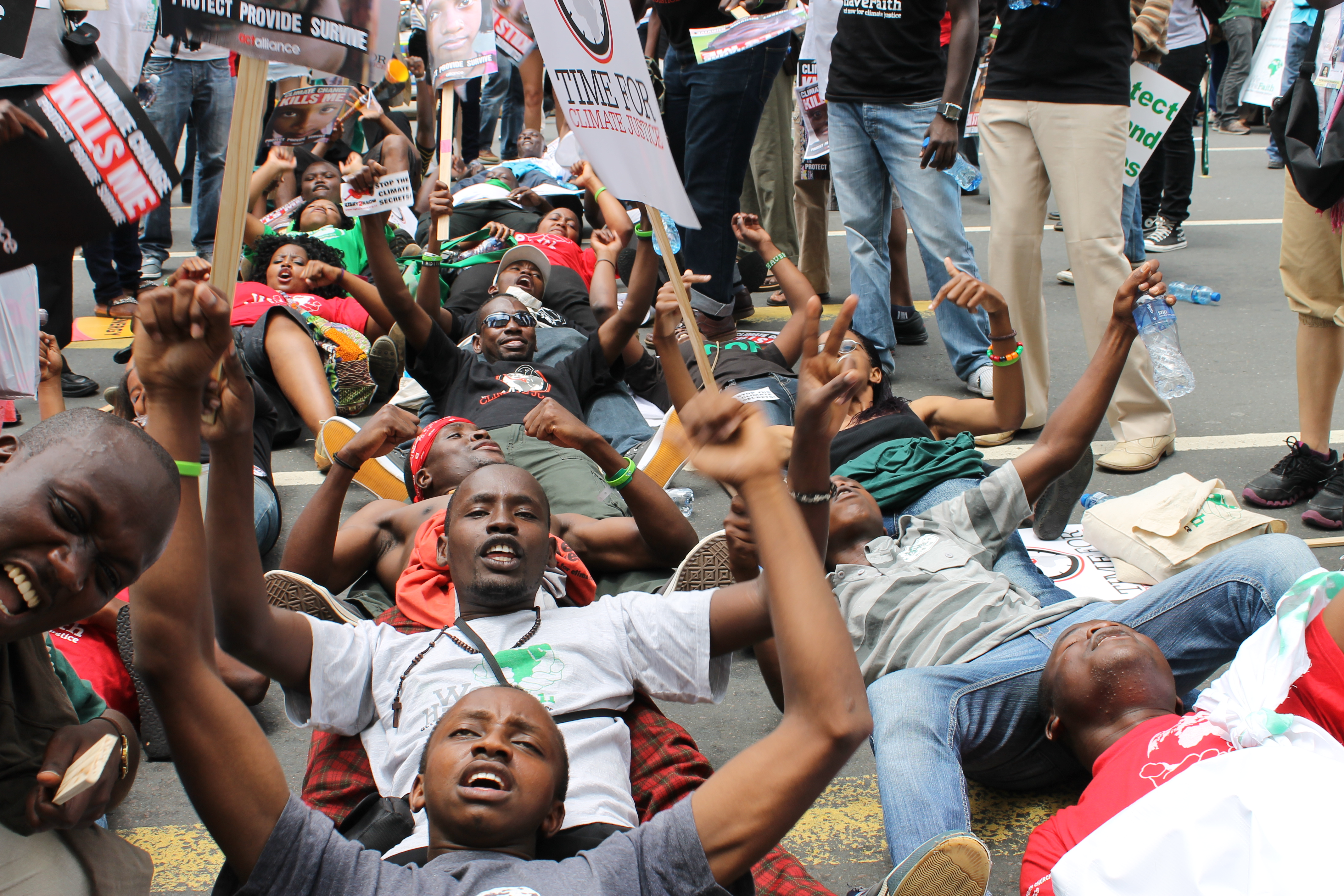Some of the most powerful songs, chants and dances of protest took place while we were waiting to join with the wider rally. There was a large contingent of youth who have travelled on the caravans. They were a vibrant group leading others in the chants and songs. One in particular stood out to me. One young person began by calling out “hello?” to which everyone else in the group would respond “hello!” and this was repeated several times before the leader would give a statement such as “we came from all across Africa and will not leave without being heard” after which everyone would cheer. I found this particularly relevant as it is pertinent to the situation that our calls are answered. It is one thing for us to call out, but who is listening and who will answer? This chant demanded a group response that all were eager to give. “This is our future,” they said “and not their future.” They were very clear that they have heard enough talk. It’s time for action.