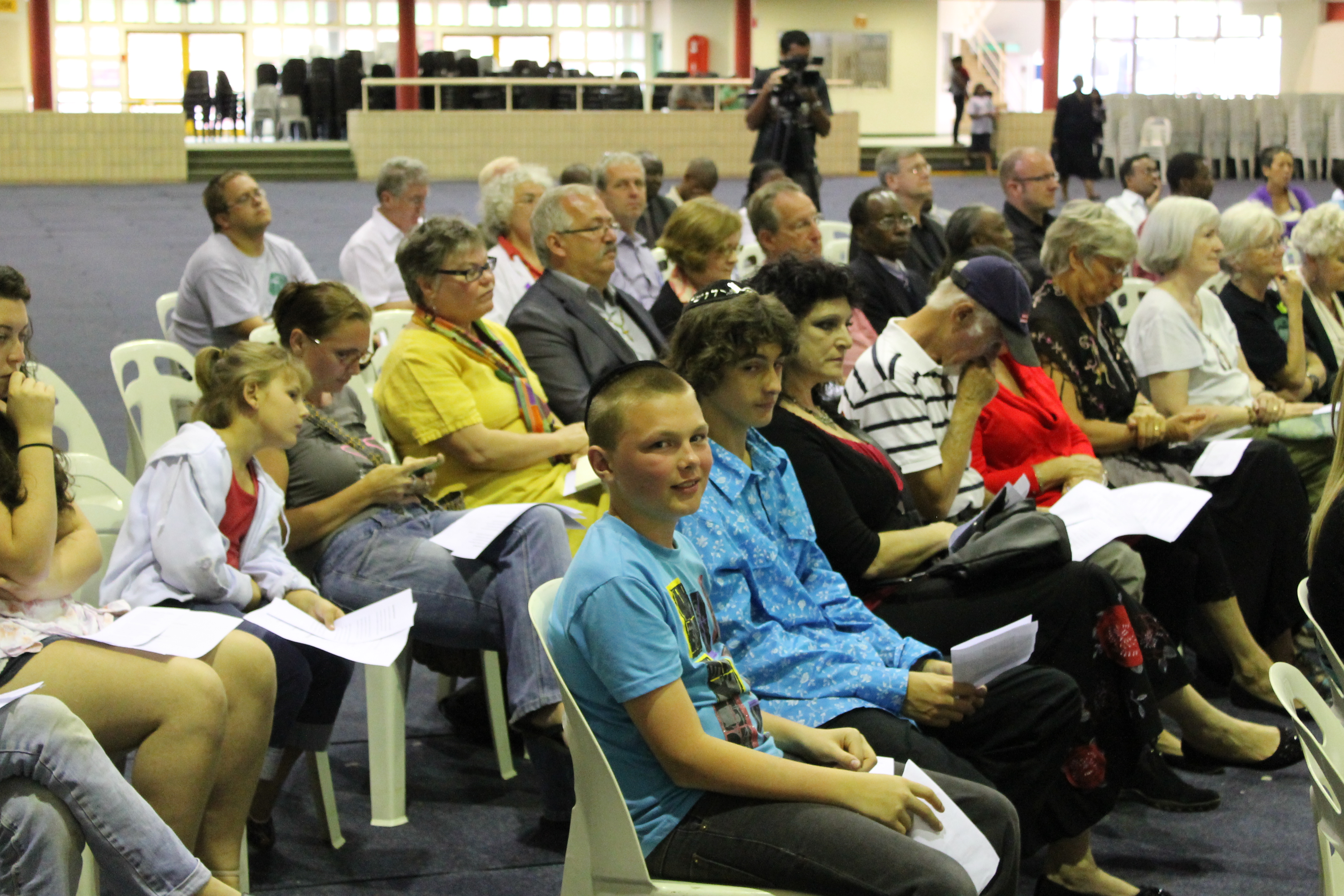 After the soccer match, I went back into the ICC and attended a panel discussion called “Climate Justice and Food Security: Moral, Ethical and Spiritual Imperatives.” Moderator Mardi Tindal was speaking on the panel, along with Rabbi Hillel Avidan (rabbi at the Temple David of Durban), Sister Jayanti Kirpalani (Regional Director, Brahma Kumaris World Spiritual University – Europe), Rev. Nicta Lubaale (General Secretary, Organization of African Instituted Churches), Bedria Mohammed Ahmed (Co-chair, Women of Faith Network, Ethiopian Interfaith Development Dialogue and Action), Presb. Patricio E. Sarlat Flores (Executive Secretary, Episcopal Commission of Caritas Mexico), and Dr. Ela Gandhi (Honorary President, Religions for Peace). The panel was moderated by Cardinal Wilfrid Napier (Chair, KwaZulu-Natal Inter-religious Council).