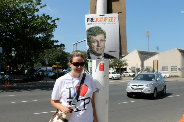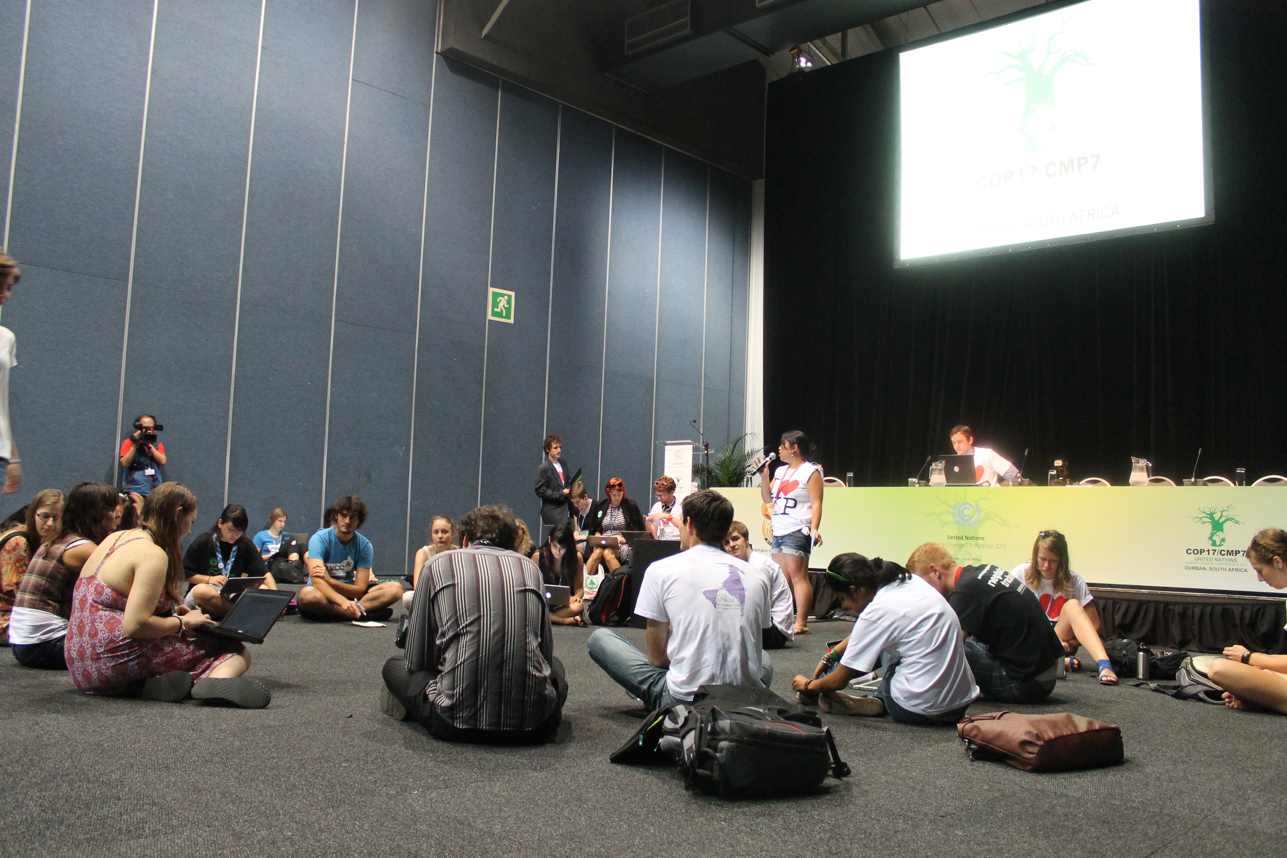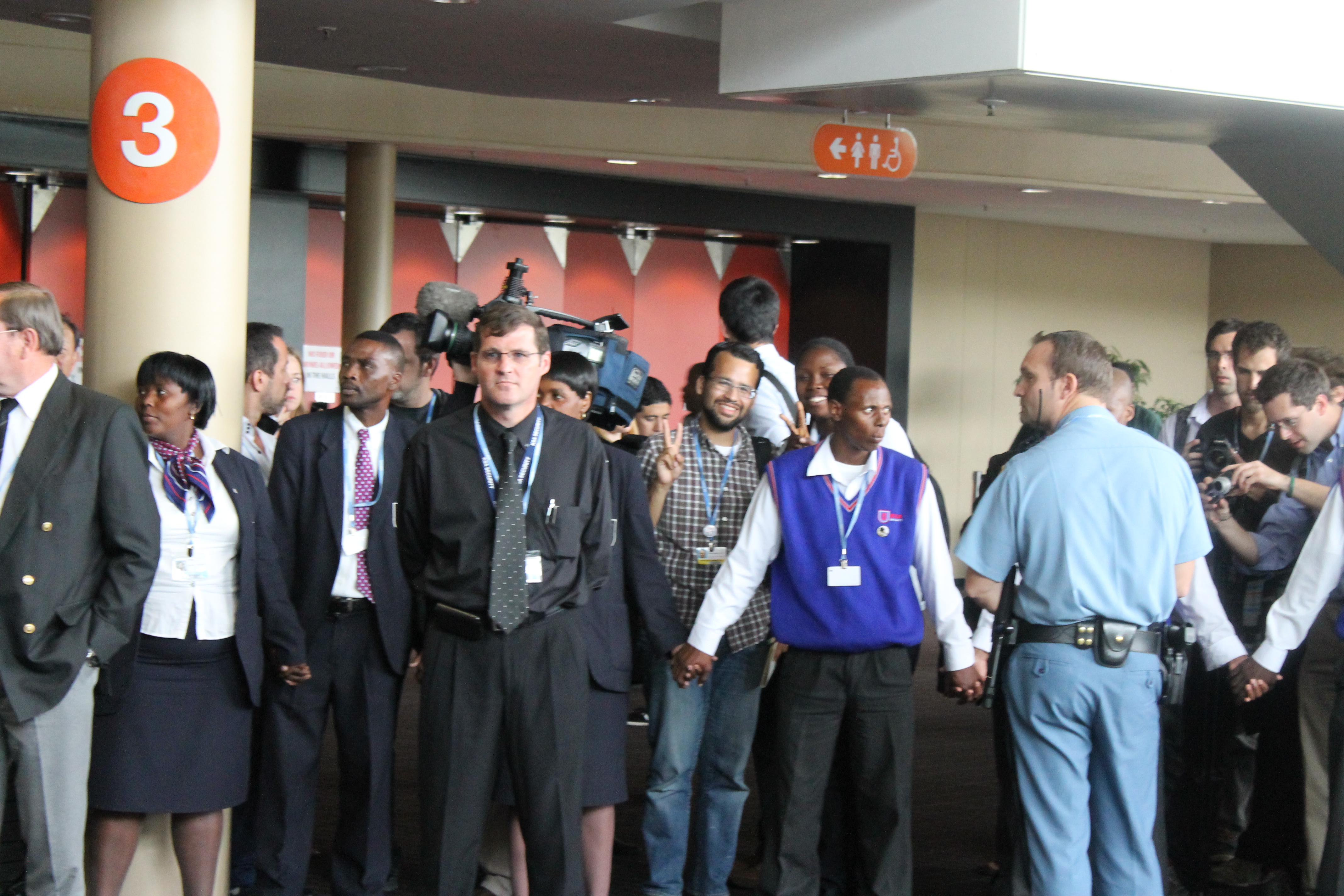 Of course, this peaceful, silent protest was a security risk and they had to be ushered out. All they did was stand. It was the most effective protest I’ve ever seen, and one that made the security officers, and COP 17 officials, seem even more ridiculous. Check out the video of Kent’s speech below. At about the 3.30 minute mark, you’ll here a round of applause – listen to how long it is! And it was much louder from where I was standing; you couldn’t even hear Kent. That’s for these amazing youth.