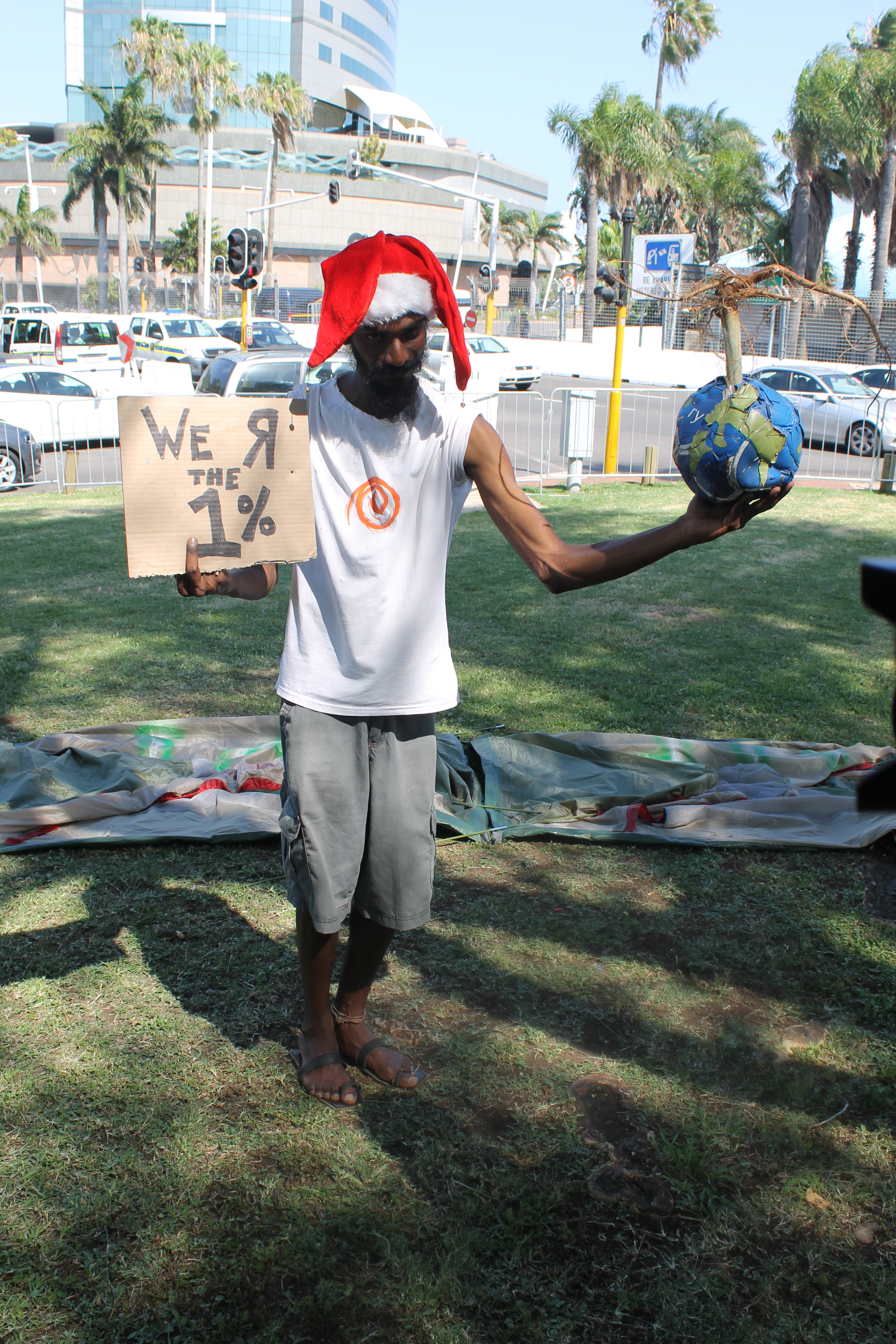 “Madam, madam! Are you with the press?” I hear a man shout behind me. Before waiting for my answer, he says, “the television won’t show what’s happening in the streets of Durban, madam”. He (I later learn his name is Joshua) goes on to tell me that he has been living on the streets for 25 years. Joshua explains that Durban’s street people are being cleared from the streets in a sweep to make the city more ‘attractive’ in the eyes of the thousands of visitors here for COP-17.