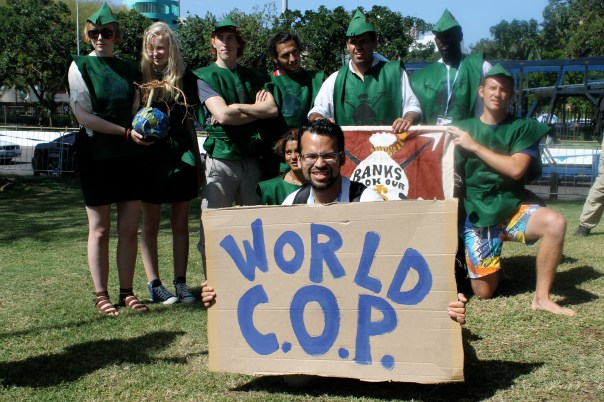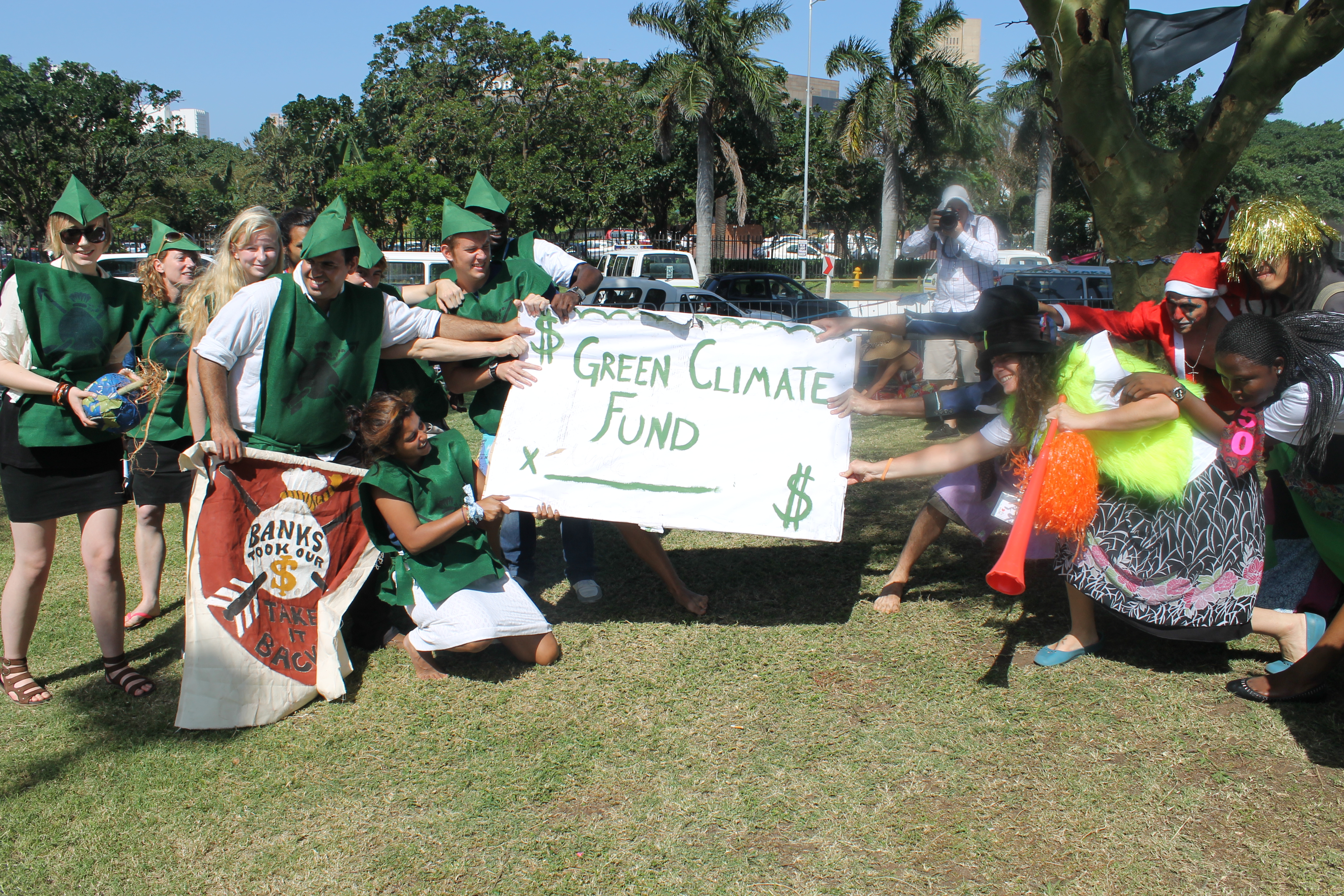After this pretty intense plenary, we had some levity in the afternoon in the form of a mock soccer game between the 1% bankers/clowns and the 99% Robin Hoods. The prize? Control of the Green Climate Fund.