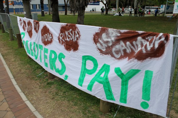 Friday afternoon was free, so naturally a few of us went down to the ICC (where the COP is being held). Our first stop was at the Occupy COP site, where we affixed our sign from the previous weekend’s rally to the fence surround the site, facing the ICC.