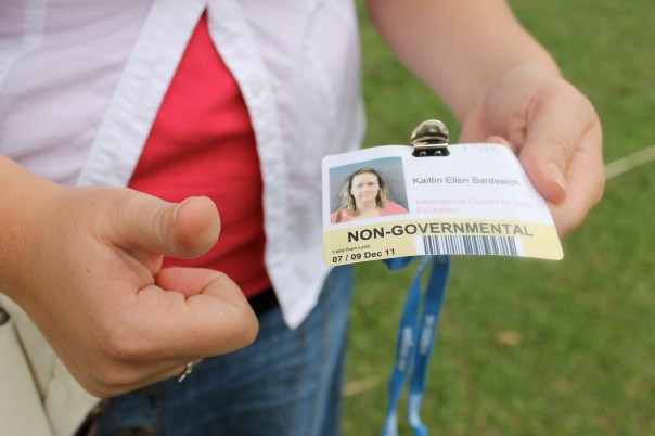Yesterday, I went inside the ICC (International Convention Centre) for the first time. It was pretty awesome to experience it. But it also made me realize, once I got in, how exclusionary the process truly is. You need to be a delegate to get inside, and that can be a difficult process. Plus, not all the delegates have access to all the parts of the ICC process; as one of the KAIROS partners said on Monday, you really notice what colour your badge is (hers and mine are yellow, for NGOs). Today and tomorrow, you may even need a special ticket to get in to the plenary. It really makes me wonder how much say “the people” have in any of this.