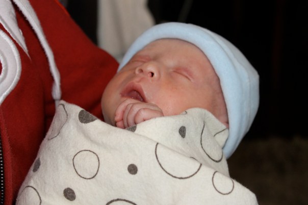 Well, after only 33 hours of travel, I’m safely back in Toronto. It was a long journey, and I kinda feel like I don’t know what day it is (it feels like I missed Monday – how is that possible?). I’m back at work at Church House tomorrow, but first, this morning, I went to see my friends Sarah and Jon’s new baby Jacob, who was born while I was away, on November 21.