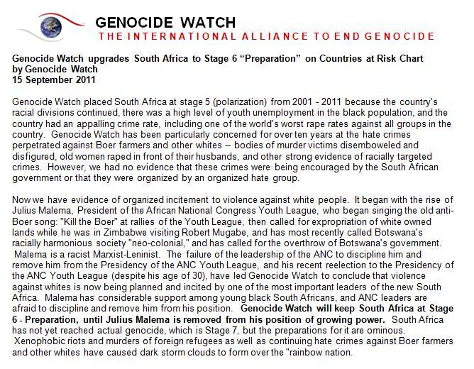 And even more alarming, Genocide Watch has placed South Africa at a 6 – “preparation.” 7 is actual genocide.